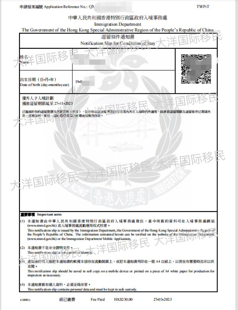恭喜C先生成功續(xù)簽香港簽證!由大洋國(guó)際移民www.sweetybb.com首發(fā),轉(zhuǎn)載請(qǐng)注明出處。