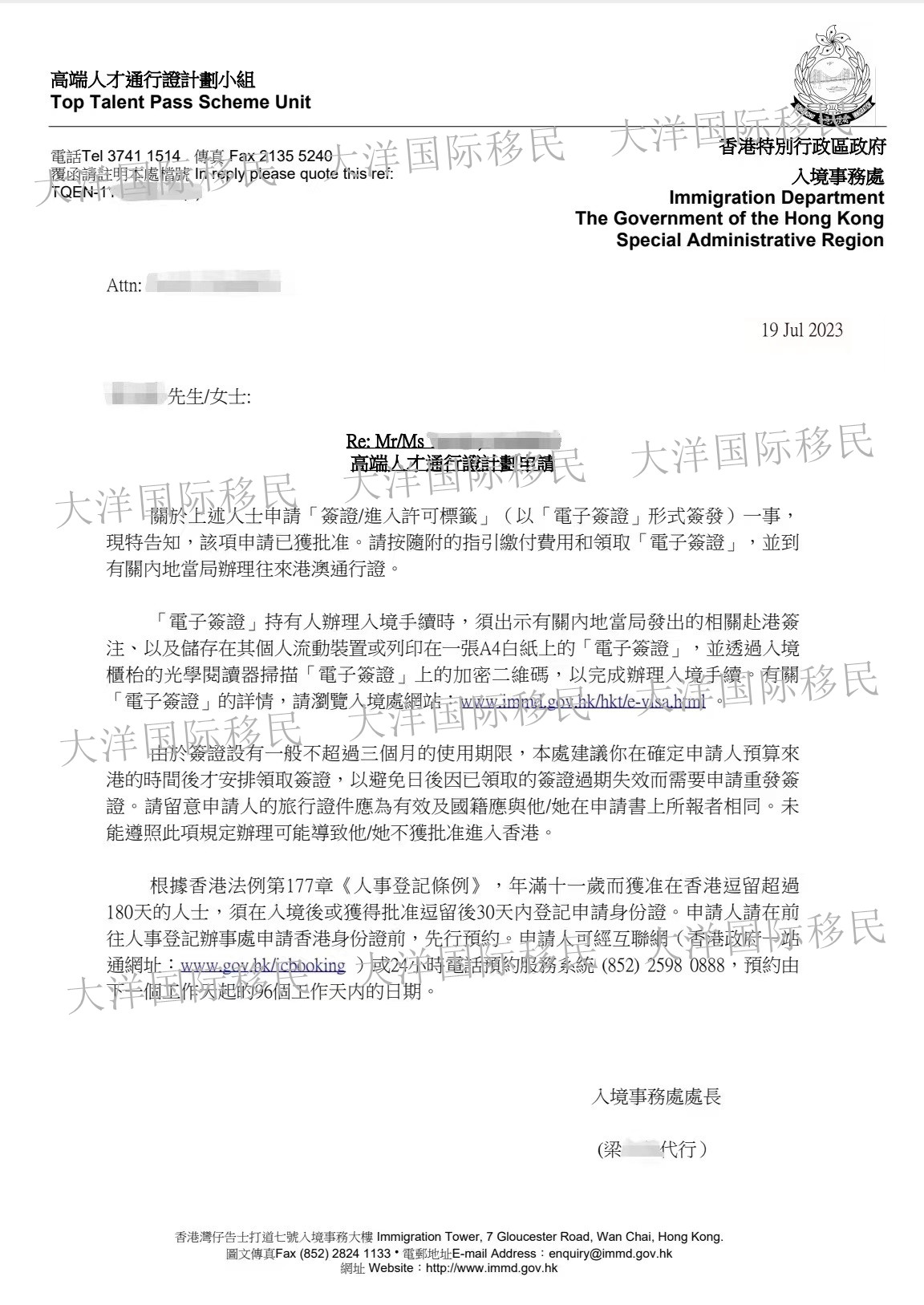 恭喜X先生成功獲批香港高才計劃!由大洋國際移民www.sweetybb.com首發(fā),轉(zhuǎn)載請注明出處。