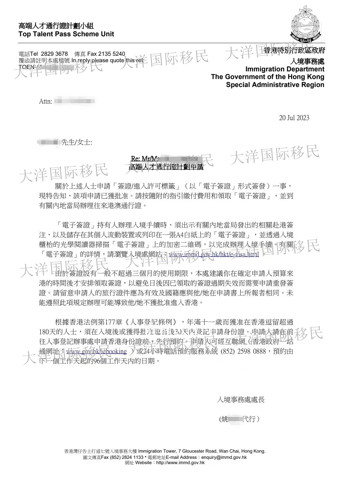 F先生為了子女教育以及出行便利想要辦理香港身份,我們于2023年7月20日為F先生成功獲批了香港高才計劃,恭喜F先生!