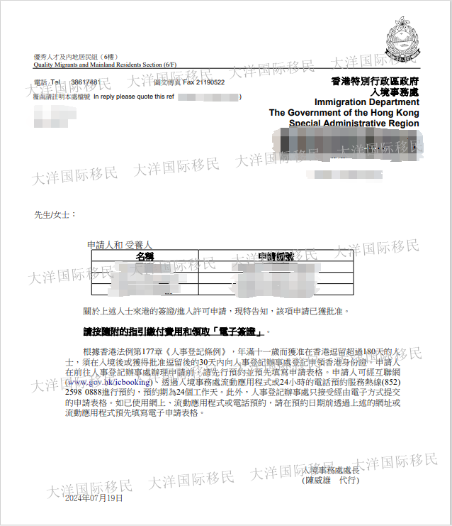 恭喜Y先生成功獲批香港專才移民,喜獲香港身份!由大洋國際移民www.sweetybb.com首發,轉載請注明出處。