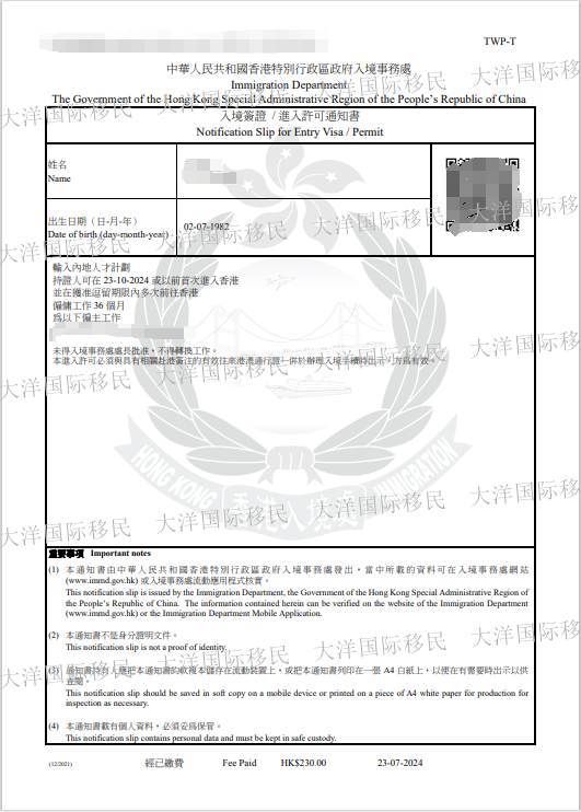 恭喜A先生成功獲批香港專才移民,喜獲香港身份!由大洋國際移民www.sweetybb.com首發,轉載請注明出處。