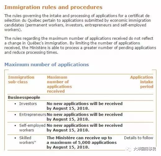 而2018年3月30日,魁省官網正式公布了各移民項目延期到8月15日開放的決定,具體如下:魁省投資移民將延遲到8月15日后開放,自雇移民和企業家移民也是在8月15日之前不會接受任何申請。
