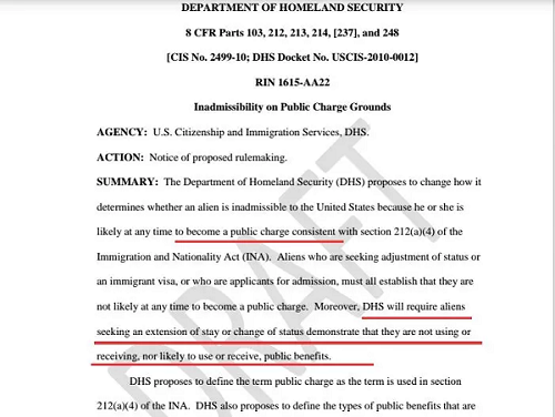 這份兩百多頁的新草案內容主要是針對使用美國福利的移民,要求申請人證明自己沒有使用或者接受公共福利,沒有可能成為“公眾負擔”,對申請人在美國的工作、收入、家庭成員也進行嚴格的審查,判斷申請人在將來會不會成為公眾負擔。