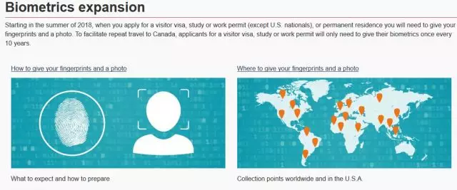 2018年7月31日起,申請者在歐洲、中東和南非辦理加拿大簽證,需要提供生物信息。而在亞洲、亞太區和美國辦理,則會從2018年12月31日起。