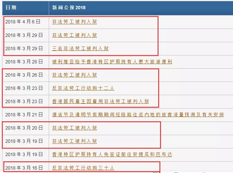 香港作為國際化的大都市,工作機會多,薪資標準高,有些行業的薪資甚至為內地的3-5倍。同樣的工作,自然是薪資標準高的更具吸引力。赴港工作是需要有合法身份的,而因申請困難問題,便催生了非法赴港打工的現象。小編今日去香港入境處的官網上看了一下,75%的最新公報都是非法勞工問題。