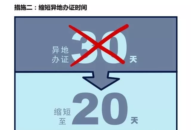 4、“縮短異地辦證時間”,跨省異地申請出入境證件的審批時限由30日縮短至20日;