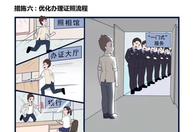 1、優化辦理證照流程,將原來辦理證照需要的制證照片采集、指紋采集、申請材料提交、面見核查、證件繳費這些分散于不同時間段、不同場所的各個環節集中在同一時間、同一場所辦理;