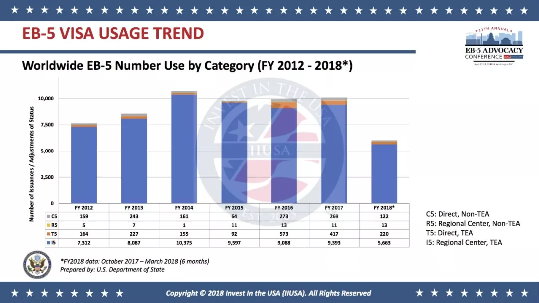EB-5簽證申請數為:4,960,而2017年上半年僅僅只有2,250張,增長1.2倍。