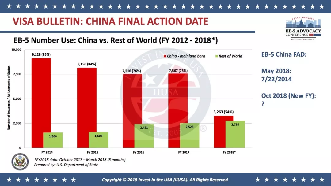 近日IIUSA大會上,國務院簽證辦公室主任Charles Oppenheim給出了排期預測,以及簽證分配統計的最新數據。