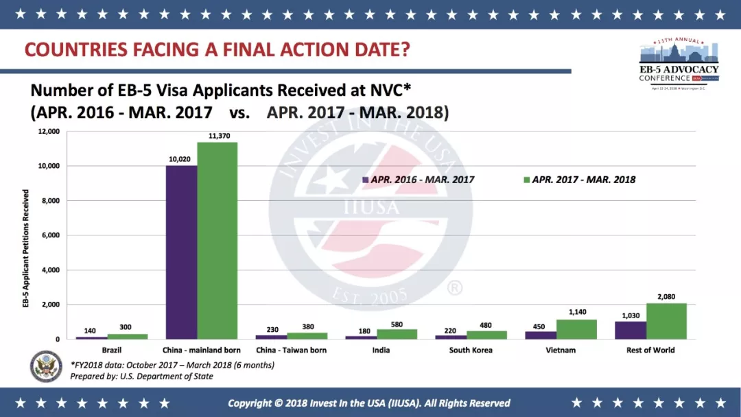 * 增長迅猛,簽證發放數比I-526遞交數還有差距,發放數還可能繼續增長。