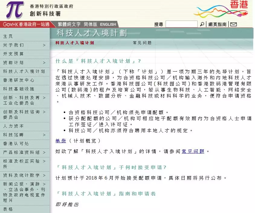 為期三年的“科技人才入境計劃”,為科技公司及機構輸入海外和內地科研人才,預計第一年將輸入最多1000名科技人才,目標是在2018年6月內開始接受申請!