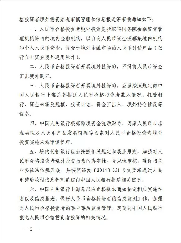 根據2014年發布的《中國人民銀行關于人民幣合格境內機構投資者境外證券投資有關事項的通知》(銀發〔2014〕331 號),