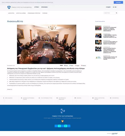 塞浦路斯PIO官網(wǎng)發(fā)布關(guān)于新政的頁面
