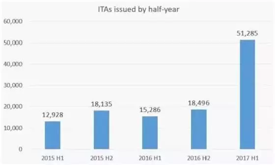 報告中顯示,2017上半年獲邀人數大幅增加,僅在2017年上半年就有51285人獲邀省提名,并且受邀人數是2016年上半年的3倍。