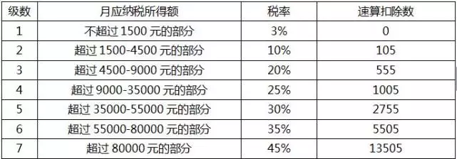 在個人所得稅稅率方面,我國實行七級超額累進稅率,不同的應納稅所得額區間對應不同的稅率,稅率最低檔為3%,最高檔為45%。稅率具體如下表所示: