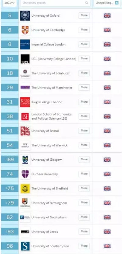 曼大今年的排名上升了5個名次,位列世界第29位。其實曼大在QS榜單上的排名在最近五六年是比較穩定的,高高低低,都在30名上下浮動。