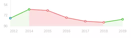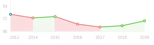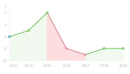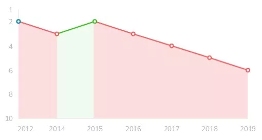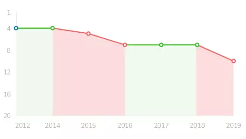 UCL 在今年的榜單上位列第10,比去年又下降了3個位次。由上圖可以看出,從2012年開始,UCL在QS世界大學排行榜的排名就在持續下降中,好在依然維持了TOP10的位置。
