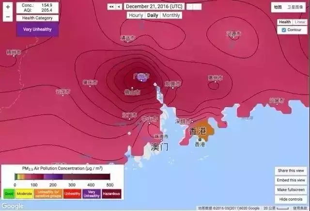 華南的廣州pm2.5 ADI指數達到200,比上海還高!