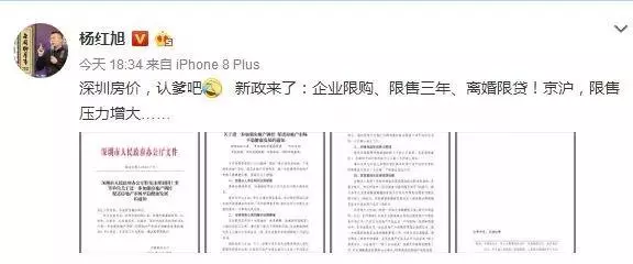 易居研究院副院長楊紅旭點評稱:企業(yè)限購、限售三年、離婚限貸,深圳房價認跌吧!