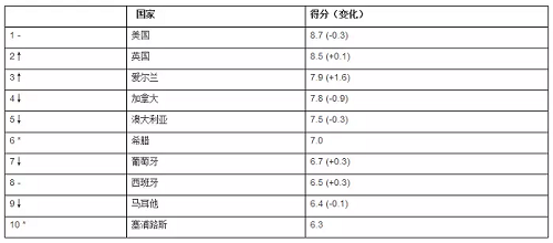 2.2018中國(guó)移民指數(shù)Top10國(guó)家