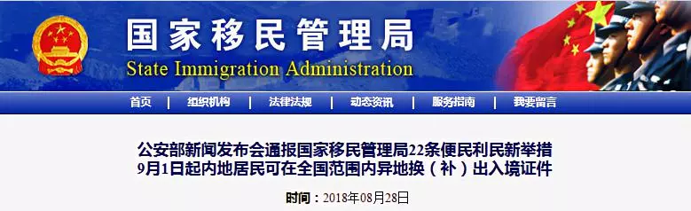 8月28日,公安部在京召開新聞發布會,國家移民管理局在發布會上通報,國家移民管理局出臺22條改進服務管理的新舉措,將于2019年一季度之前分期分批實施。
