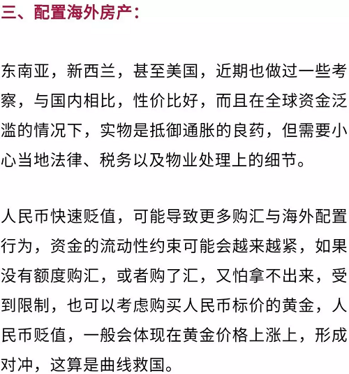 人民幣在岸和離岸市場與美元的匯率將加速下跌,在中國各個方面的改革和經濟轉型的困難時期,美國加息無疑更是雪上加霜。中國目前卻在減息周期,降息空間有限,作為個人投資者,應該盡量減少銀行人民幣存款,做好個人理財,在長期資產配置中,應該重點考慮歐美等市場。