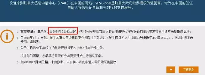加拿大簽證中心發出公告,更新了加拿大簽證申請錄指紋的消息!