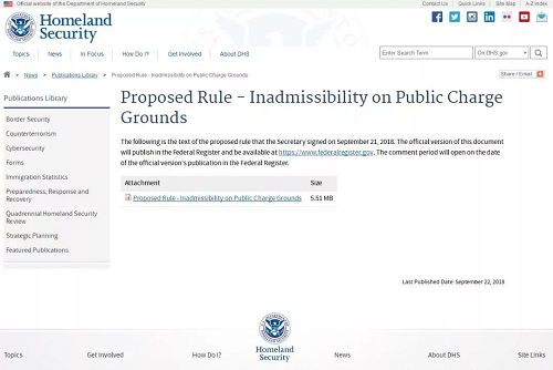 當地時間9月22日,美國國土安全部網站公布新規定提案:在美外國人若曾享用公共福利,如領取糧食券、申請國民住宅或享“醫療補助”(Medicaid)等,將更難以取得永久居民身份。