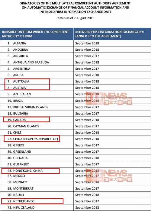 加拿大,澳大利亞,香港,新西蘭等華人喜愛的海外國家全都加入了CRS。