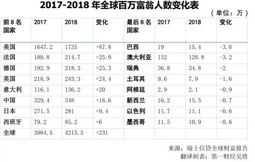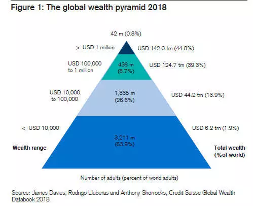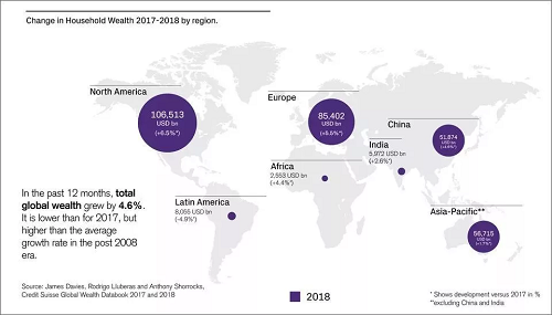 在這份報告中,截至2018年中期的12個月內,全球總財富增加了14萬億美元,達到317萬億美元,增長率約為4.6%。