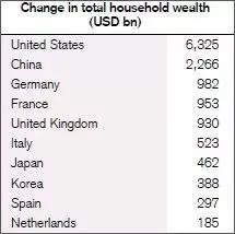 全球成人平均財富增長3.2%,達到63100美元,創下歷史新高。中國目前家庭財富規模位居全球第二,增長2.3萬億美元,達到52萬億美元。