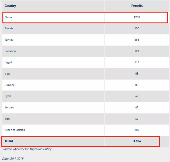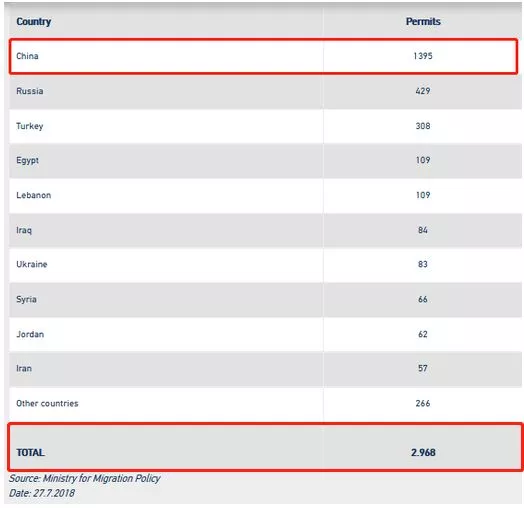 希臘投資促進局(Enterprise Greece)數據顯示,截止到2018年9月30日,希臘共發放了3404張永居簽證。其中,中國投資者人數位居第一,共獲批1700張;俄羅斯第二,450張;土耳其第三,356張。