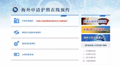“海外中國公民護照在線預約系統”日前進行了相關升級,增設“護照辦理進度查詢”、“收集領事服務評價”等功能。