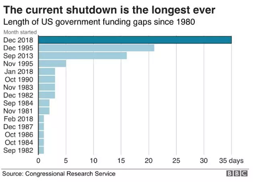川普總統在白宮玫瑰園關閉的35天發表講話稱,該協議將為政府提供資金,直至2月15日。特朗普說,在長達35天的政府部分停擺期間80萬公務員無法上崗工作和領到薪水。他稱贊道:“令人難以置信的愛國者”,將獲得全額支付。
