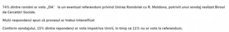 2018年12月10日,摩爾多瓦社會研究局公布最新民調結果顯示:很不可思議的事情是,74%的摩爾多瓦人投票贊成希望與羅馬尼亞合并,15%的受訪者投票反對聯盟,11%的受訪者不參加公投。這將意味著歐盟委員會一旦啟動公投程序,結果是壓倒性的!摩爾多瓦與羅馬尼亞兩國合并,是讓摩爾多瓦快速加入歐盟的有效途徑!雖然兩國合并不是一件簡單的事情有些天方夜譚,但現象可以表明兩國關系較好,這也是為什么羅馬尼亞有意幫助摩爾多瓦加入歐盟。如果真的能合并那可就是一步到位歐盟國了。