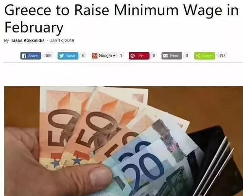 希臘擺脫經濟危機影響后,很快就宣布放寬對國內的經濟管制,加大對國內民眾的福利補貼,近日希臘宣布將于2月1日提高最低工資標準,預計將提高5%-10%。
