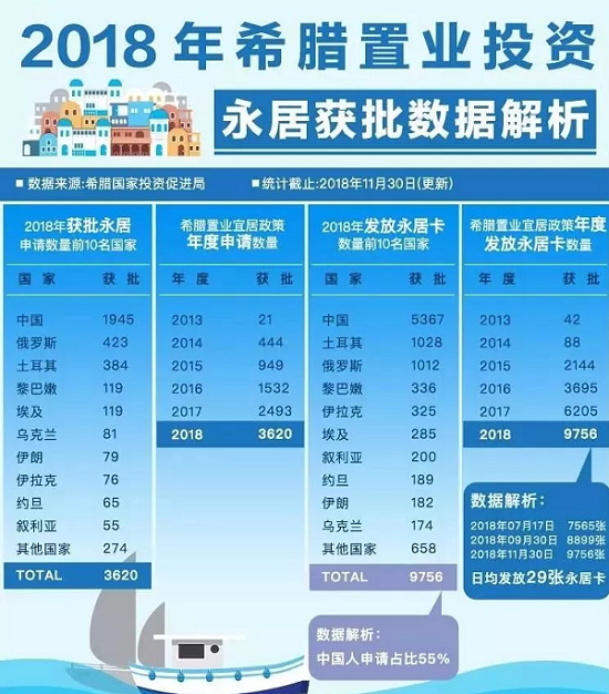 希臘投資移民獲批數量暴漲,截止到11月底已經發放9756張永居卡,希臘黃金簽證今年共向3620名主申請人和6136名附屬申請人發放了永久居留許可。