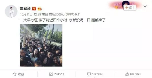 去年李易峰就曝出去簽證光排隊就排了4小時......