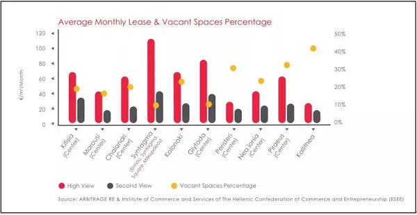希臘各個區(qū)域的商鋪空置率