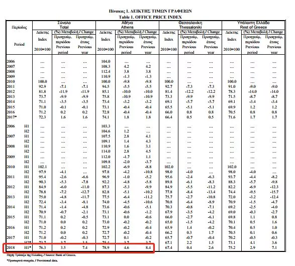 根據(jù)上圖希臘銀行出具的希臘本地辦公室的零售價格指數(shù)來看,整個希臘區(qū)域2018年上半年的辦公室零售價格上漲了7.4%,雅典地區(qū)漲幅更是達到了8.4%。資金充足的投資者一般會選在希臘的黃金區(qū)域投資一個商鋪或者辦公室,坐享收益。