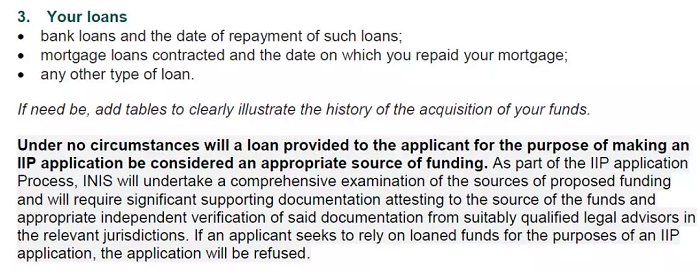 任何情況下,投資人在申請過程中提供的任何形式的融資貸款都將被視為不合規(guī)的資金來源。作為申請流程的一部分,愛爾蘭移民歸化局將對資金來源進行全方位的審查,同時要求提供充分有效的資金來源證明文件,以及相應司法管轄區(qū)域內(nèi)有資質(zhì)的法律顧問對前述文件進行獨立審核。如果移民局發(fā)現(xiàn)投資人的申請中存在融資貸款的資產(chǎn),那么將拒絕其申請。