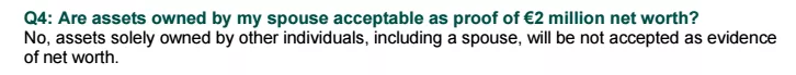 主申請人配偶將不能作為200萬歐元資產(chǎn)證明!也就是說,今后200萬歐元的資產(chǎn)需要在主申請人名下。