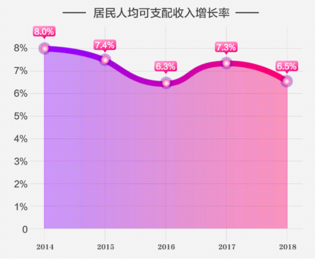 而且,我們的收入也漲了。2018年全國居民人均可支配收入為28228元,實際同比增長6.5%,跑贏了人均GDP6.1%的增速呢。