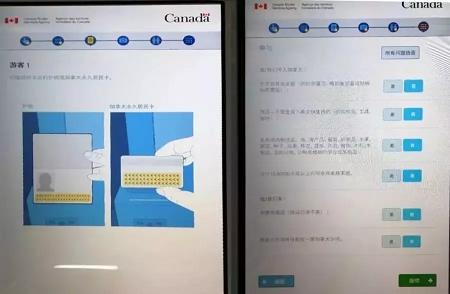 到達海關窗口后CBSA官員將核查擬入境者的來加身份或事由,記得出示剛才的申報單。CBSA官員通常會詢問一些問題,如來加目的、在加居住地、攜帶多少錢等。切記不要因為語言障礙表現出緊張或慌張,宜從容回答即可。如太緊張或慌張,容易讓CBSA官員產生誤解,遭受嚴格檢查。不懂英文,無法進行交流,可以要求CBSA提供翻譯服務(免費)。