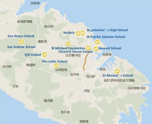 國際知名度比較高的幾所學(xué)校有:戚斯威克學(xué)校(Chiswick House School)、圣馬丁學(xué)院(St Martin's College)、圣安東尼學(xué)校(San Anton School)、圣安德烈學(xué)校(San Andrea School)、圣愛德華學(xué)校(St. Edward College Malta)等。