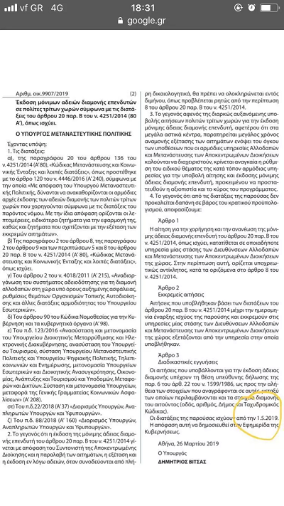 據這份政府公文稱,希臘移民政策部頒布以下規定,其中涉及希臘投資移民的內容如下: