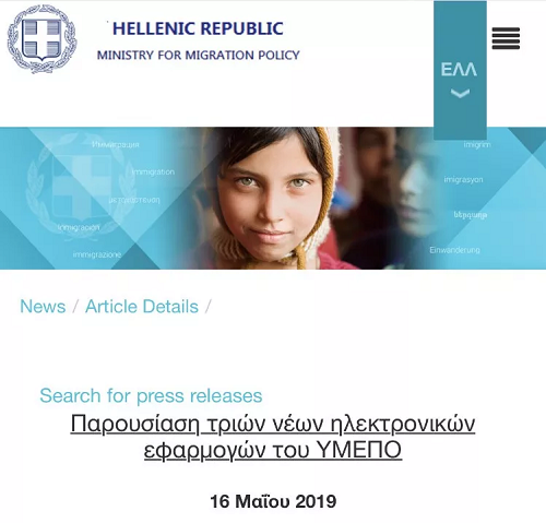 TIP 1 該平臺已在比雷埃夫斯移民局試運行,并將在2019年6月阿提卡移民局開始實施,預計將于秋季在移民信息系統進行全面試用。