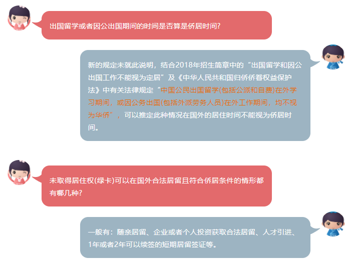 其對華僑生作如下規定:“已取得外國長期或永久居留權,且最近4年(截止報名時間結束止)之內有在國外居住2年以上的記錄(自獲得外國長期或永久居留權起計,一年中實際在國外居住滿9個月可按一年計算,出國留學和因公出國工作不能視為定居)。