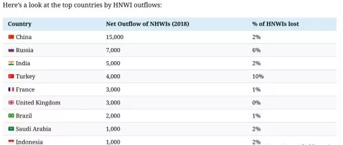 2018年,中國移民海外富豪人數更是再破紀錄: