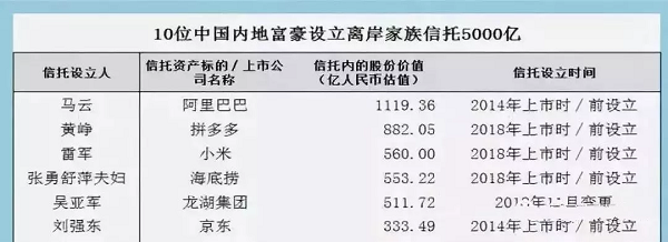 而《中國經營報》也曾報道指出,2018年,公司在香港上市的的內地企業家就有15名設立了離岸信托,總計將285億美元資產轉移到國外。